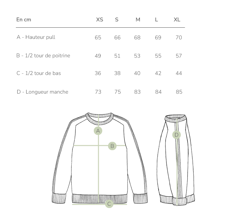 Le pull en laine pour homme et femme est un modèle unisexe. Si vous êtes entre deux tailles, prenez la taille la plus grande.
